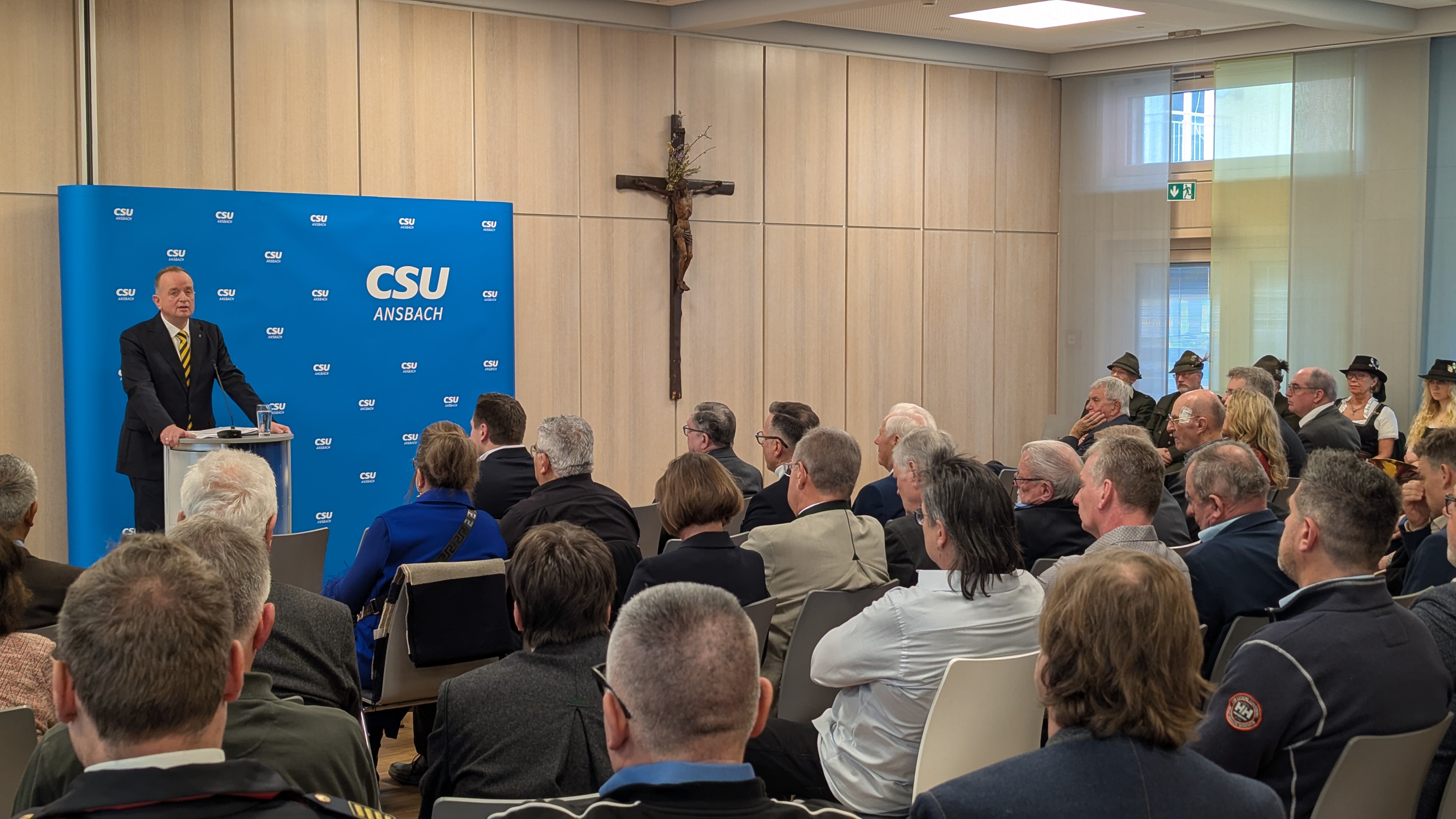 Mit deutlichen Worten wandte sich Schalk auch an Oberbürgermeister Thomas Deffner: „Thomas, behalte deinen Weg bei. Ansbach kann sich glücklich schätzen, einen Oberbürgermeister zu haben, der die Verwaltung kennt, der die Stadt kennt und sie mit Sachverstand und Herzblut führt.“ Deffner habe bewiesen, dass er die Stadt sicher durch herausfordernde Zeiten führen könne – und werde dies auch in den kommenden Jahren tun.