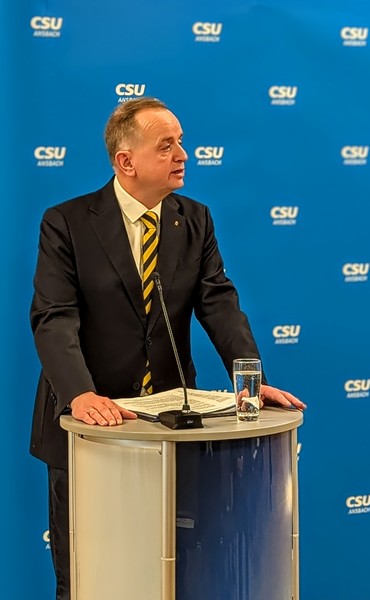 Mit deutlichen Worten wandte sich Schalk auch an Oberbürgermeister Thomas Deffner: „Thomas, behalte deinen Weg bei. Ansbach kann sich glücklich schätzen, einen Oberbürgermeister zu haben, der die Verwaltung kennt, der die Stadt kennt und sie mit Sachverstand und Herzblut führt.“ Deffner habe bewiesen, dass er die Stadt sicher durch herausfordernde Zeiten führen könne – und werde dies auch in den kommenden Jahren tun.