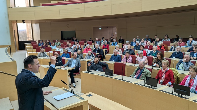 Auf Einladung des Landtagsabgeordneten Andreas Schalk haben knapp 100 interessierte Bürgerinnen und Bürger aus dem Stimmkreis Ansbach-Nord den Bayerischen Landtag besucht und dabei einen spannenden Einblick in die parlamentarische Arbeit erhalten.
